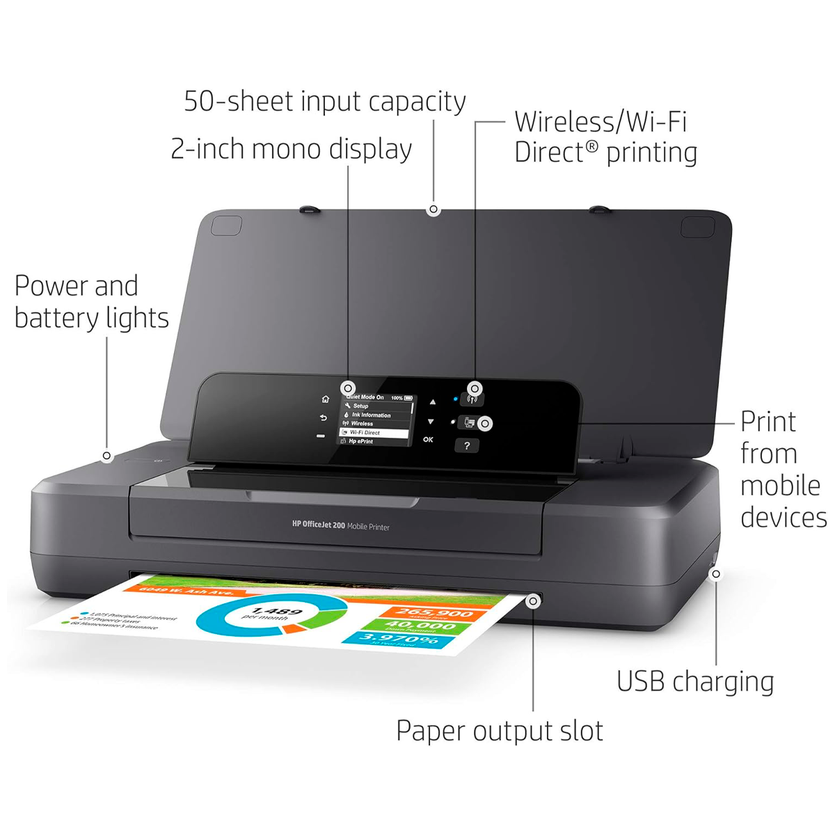 Impresora HP Officejet 200 Mobile Portatil Wi-Fi Color Inkjet CZ993A