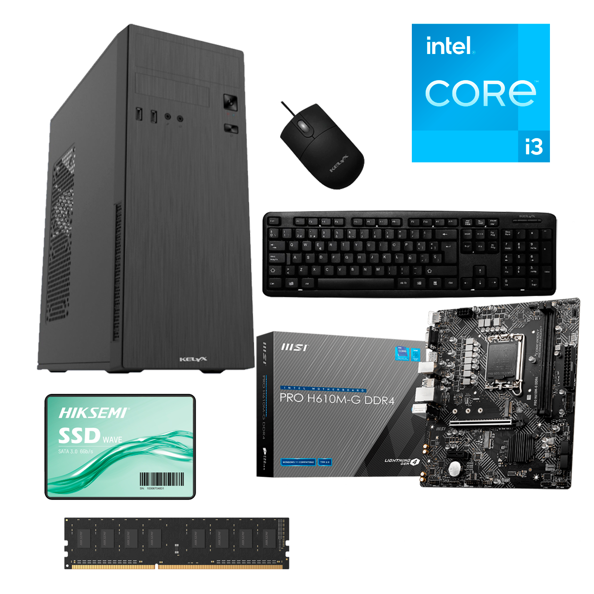 Combo PC Kelyx LC728-12 + Intel i3 + 8GB + SSD 240GB + MSI PRO H610M-G
