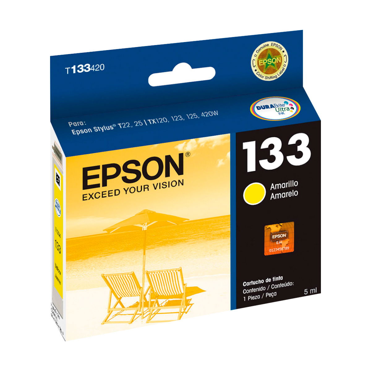 Cartucho Original Epson 133 Amarillo T133420 Stylus T25 TX120 TX420W