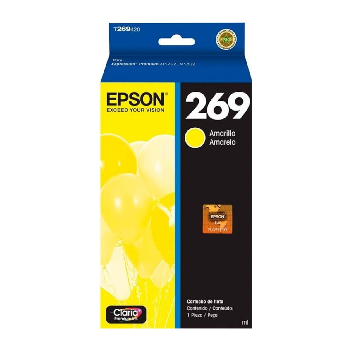Cartucho Original Epson 269 Amarillo T269420 Expression XP-702 XP-802