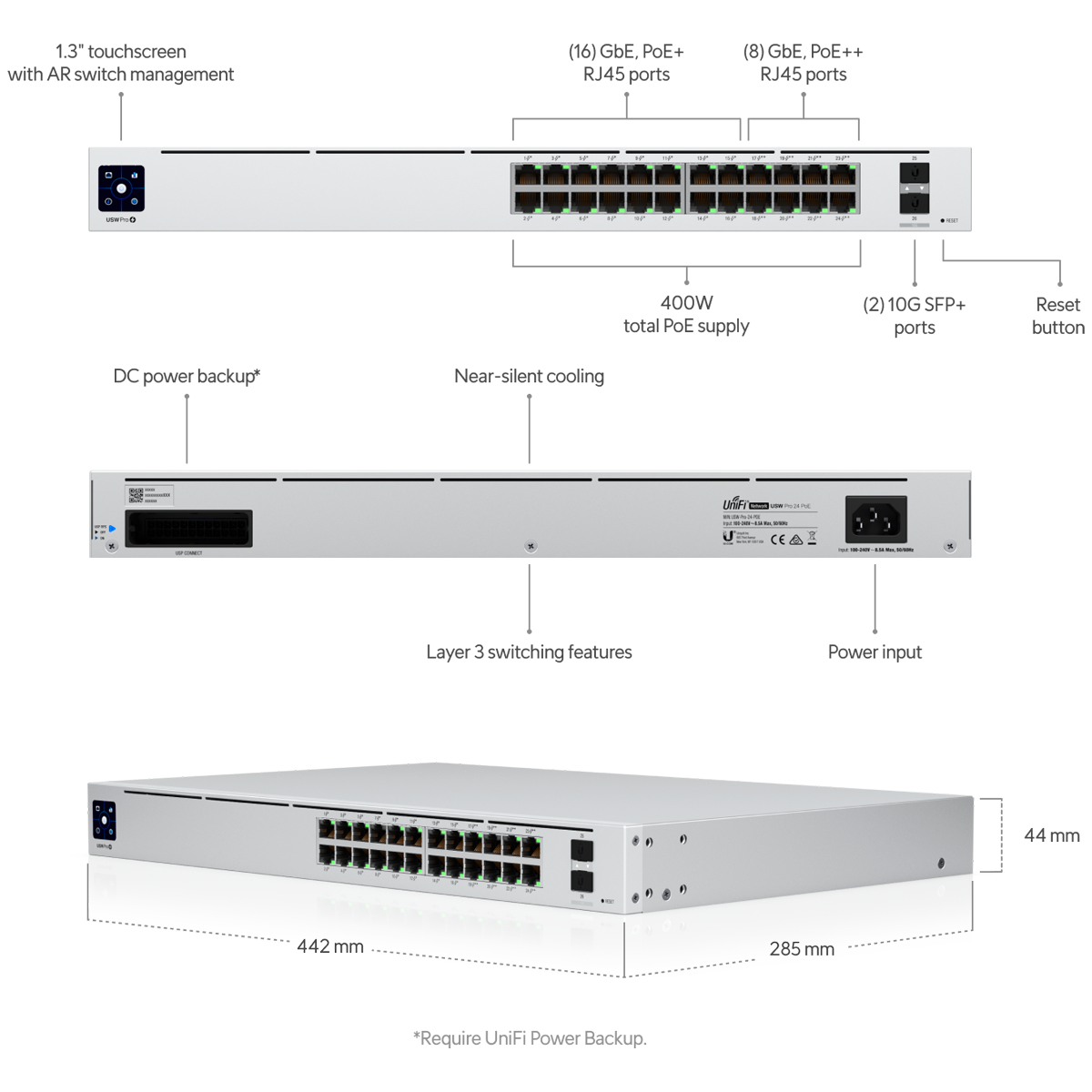 Switch Administrable Ubiquiti UniFi Pro 24 puertos 400W SFP USW-PRO-24-POE