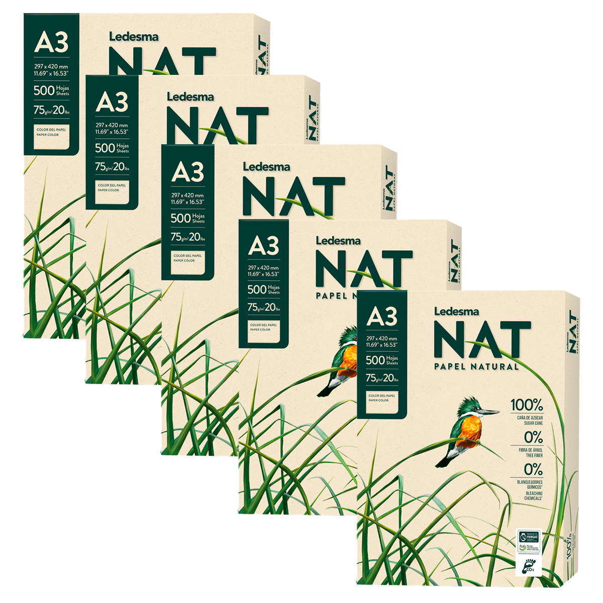 Resma Ledesma NAT Natural Ecologico A3 75 grs 500 Hojas - X 10 Unidades