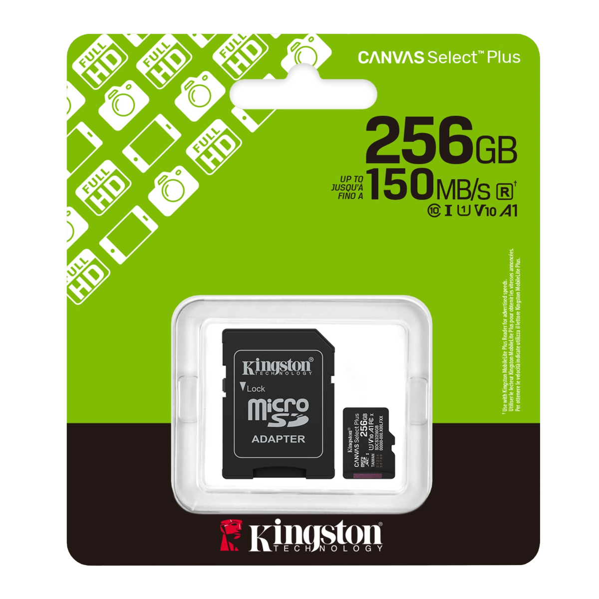 MicroSD Kingston Canvas Select Plus 256GB UHS-I 150MB/s con Adaptador SDCS3/256GB